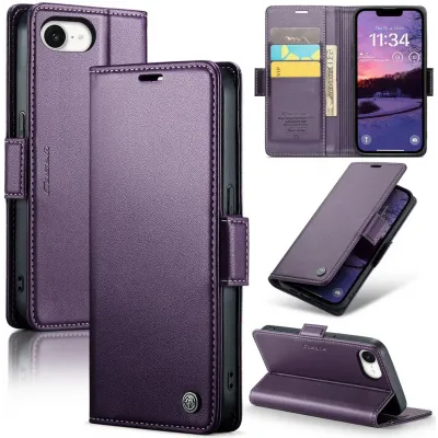 HandyhüllenApple iPhone HüllenApple iPhone 17e HüllenCASEME Litchi Texture Book Wallet Klapphülle für Apple iPhone 17e/16e - Lila