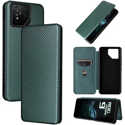 • Phonesta Carbon Fiber Skin Book Wallet Klapphülle für Asus ROG Phone 9/9 Pro - Dunkelgrün