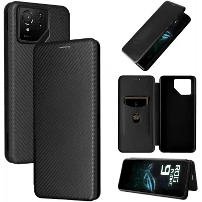 • Phonesta Carbon Fiber Skin Book Wallet Klapphülle für Asus ROG Phone 9/9 Pro - Schwarz