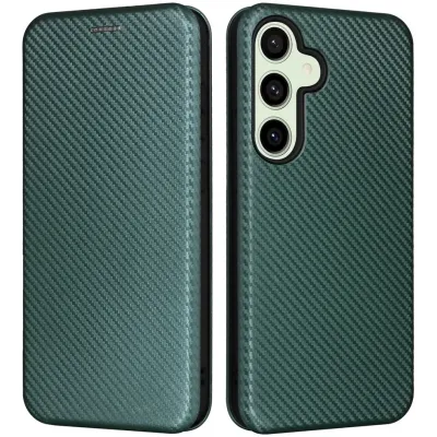 Phonesta Carbon Fiber Skin Book Wallet Klapphülle für Samsung Galaxy S24 FE - Dunkelgrün