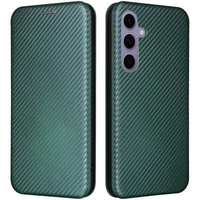 • Phonesta Carbon Fiber Skin Book Wallet Klapphülle für Samsung Galaxy S25 - Dunkelgrün