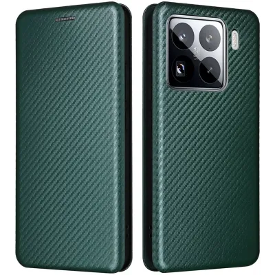 • Phonesta Carbon Fiber Skin Book Wallet Klapphülle für Xiaomi 15 - Dunkelgrün