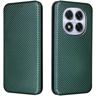 Phonesta Carbon Fiber Skin Book Wallet Klapphülle für Xiaomi Redmi Note 14 Pro 4G - Dunkelgrün