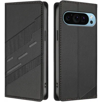 • Phonesta Embossed Lines Book Wallet Klapphülle für Google Pixel 9 / 9 Pro - Schwarz