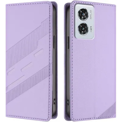 Phonesta Embossed Lines Book Wallet Klapphülle für Motorola Edge 50 Fusion - Lila