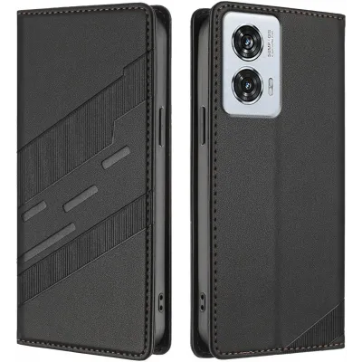 • Phonesta Embossed Lines Book Wallet Klapphülle für Motorola Edge 50 Fusion - Schwarz