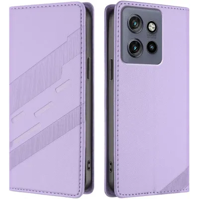 Phonesta Embossed Lines Book Wallet Klapphülle für Motorola Edge 60 Neo/Edge 50 Neo / ThinkPhone 25 - Lila