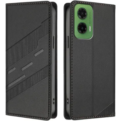 Phonesta Embossed Lines Book Wallet Klapphülle für Motorola Moto G35 - Schwarz