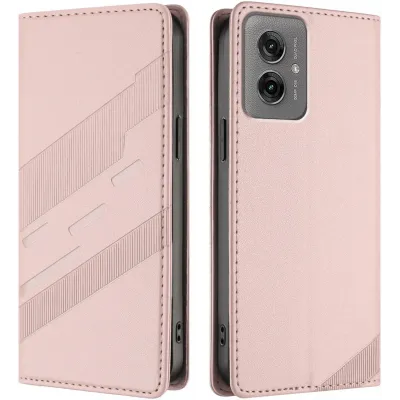 Phonesta Embossed Lines Book Wallet Klapphülle für Motorola Moto G55 - Rosa