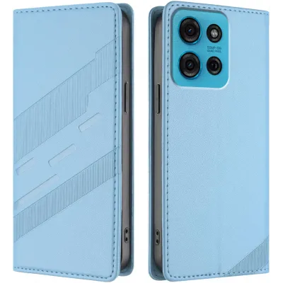 Phonesta Embossed Lines Book Wallet Klapphülle für Motorola Moto G75 - Hellblau
