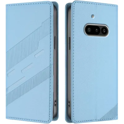 • Phonesta Embossed Lines Book Wallet Klapphülle für Nothing Phone (3a) - Hellblau