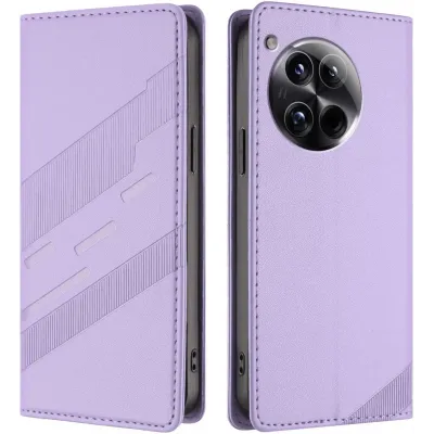 Phonesta Embossed Lines Book Wallet Klapphülle für OnePlus 12 - Lila
