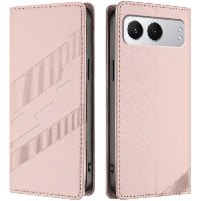 Phonesta Embossed Lines Book Wallet Klapphülle für OnePlus Nord 4 - Rosa