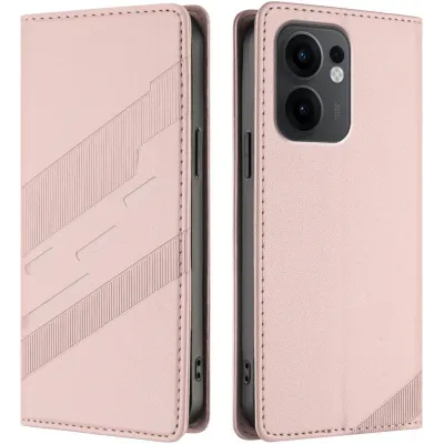 • Phonesta Embossed Lines Book Wallet Klapphülle für Oppo Reno13 F 4G/5G / Reno13 FS 5G - Rosa
