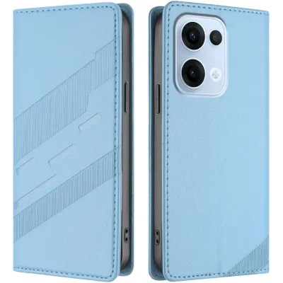 Phonesta Embossed Lines Book Wallet Klapphülle für Oppo Reno13 - Hellblau