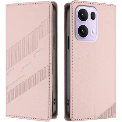 Phonesta Embossed Lines Book Wallet Klapphülle für Oppo Reno13 Pro - Rosa