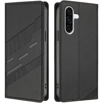 Phonesta Embossed Lines Book Wallet Klapphülle für Samsung Galaxy A36 - Schwarz