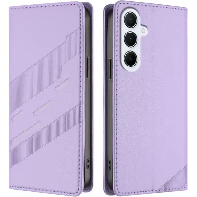 • Phonesta Embossed Lines Book Wallet Klapphülle für Samsung Galaxy A56 - Lila