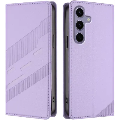 Phonesta Embossed Lines Book Wallet Klapphülle für Samsung Galaxy S24 FE - Lila