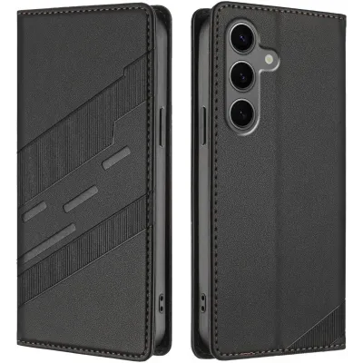 • Phonesta Embossed Lines Book Wallet Klapphülle für Samsung Galaxy S25 Plus - Schwarz