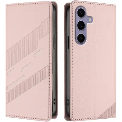 • Phonesta Embossed Lines Book Wallet Klapphülle für Samsung Galaxy S25 - Rosa