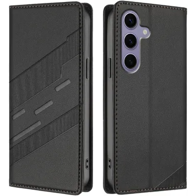 • Phonesta Embossed Lines Book Wallet Klapphülle für Samsung Galaxy S25 - Schwarz