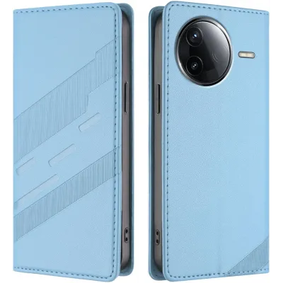 • Phonesta Embossed Lines Book Wallet Klapphülle für Xiaomi Poco F7 Pro/F7 Ultra - Hellblau