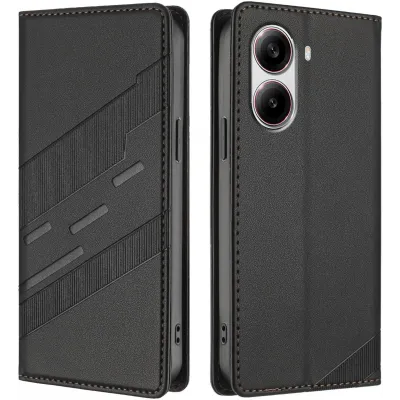 • Phonesta Embossed Lines Book Wallet Klapphülle für Xiaomi Poco X7 Pro - Schwarz