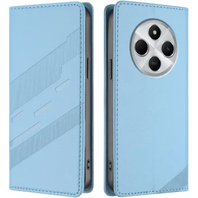 Phonesta Embossed Lines Book Wallet Klapphülle für Xiaomi Redmi 14C / Xiaomi Poco C75 - Hellblau