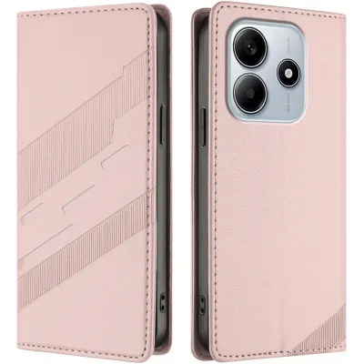 Phonesta Embossed Lines Book Wallet Klapphülle für Xiaomi Redmi Note 14 4G - Rosa