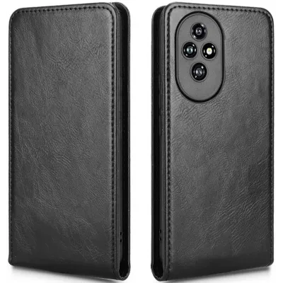 Phonesta Leder Vertical Flip Book Wallet Klapphülle für HONOR 200 - Schwarz