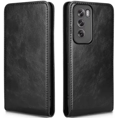 • Phonesta Leder Vertical Flip Book Wallet Klapphülle für Oppo Reno12 Pro - Schwarz