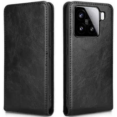 • Phonesta Leder Vertical Flip Book Wallet Klapphülle für Xiaomi 15 - Schwarz