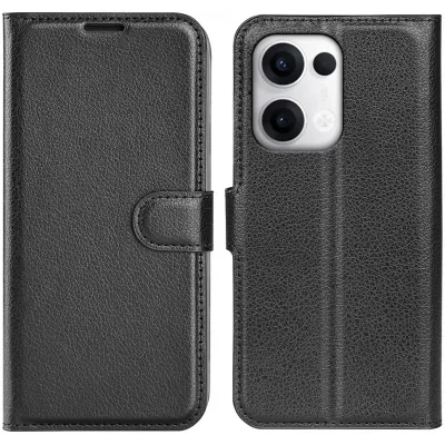 • Phonesta Litchi Skin Book Wallet Klapphülle für Oppo Reno13 - Schwarz