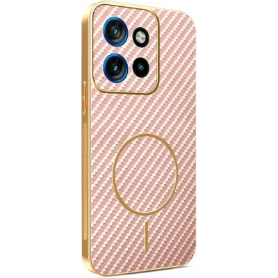 • Phonesta Luxury Carbon Fiber Back Cover Hülle mit MagSafe für Motorola Edge 60 Neo/Edge 50 Neo / ThinkPhone 25 - Rosa