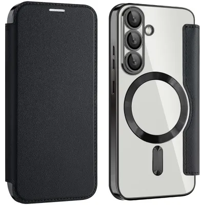 Phonesta Luxury Crystal Book Wallet Klapphülle mit MagSafe für Samsung Galaxy S25 Plus/S24 Plus - Schwarz