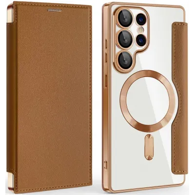 Phonesta Luxury Crystal Book Wallet Klapphülle mit MagSafe für Samsung Galaxy S25 Ultra - Braun
