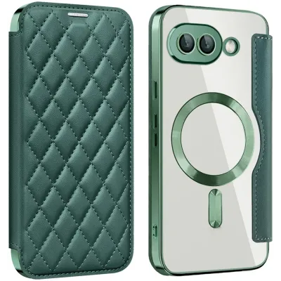 Phonesta Luxury Crystal Puffed Book Wallet Klapphülle mit MagSafe für Google Pixel 9a - Dunkelgrün