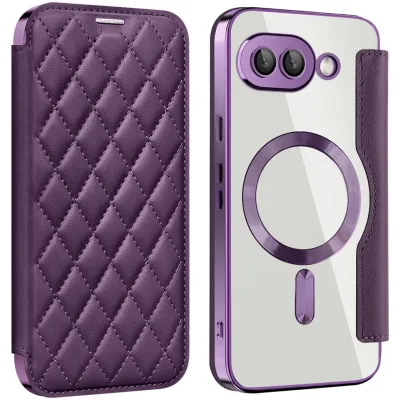 Phonesta Luxury Crystal Puffed Book Wallet Klapphülle mit MagSafe für Google Pixel 9a - Dunkelviolett