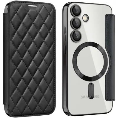 Phonesta Luxury Crystal Puffed Book Wallet Klapphülle mit MagSafe für Samsung Galaxy S24 FE - Schwarz