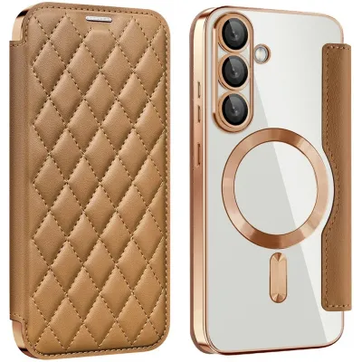 Phonesta Luxury Crystal Puffed Book Wallet Klapphülle mit MagSafe für Samsung Galaxy S25 Plus/S24 Plus - Braun