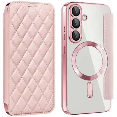 • Phonesta Luxury Crystal Puffed Book Wallet Klapphülle mit MagSafe für Samsung Galaxy S25/S24 - Rosa
