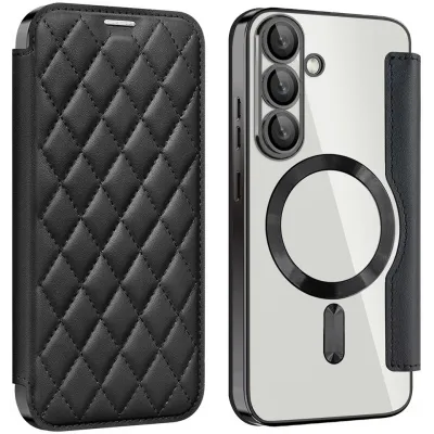 • Phonesta Luxury Crystal Puffed Book Wallet Klapphülle mit MagSafe für Samsung Galaxy S25/S24 - Schwarz