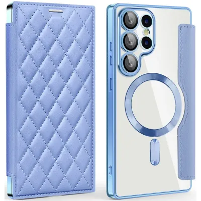 Phonesta Luxury Crystal Puffed Book Wallet Klapphülle mit MagSafe für Samsung Galaxy S25 Ultra - Hellblau
