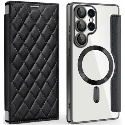 Phonesta Luxury Crystal Puffed Book Wallet Klapphülle mit MagSafe für Samsung Galaxy S25 Ultra - Schwarz
