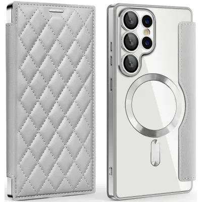 Phonesta Luxury Crystal Puffed Book Wallet Klapphülle mit MagSafe für Samsung Galaxy S25 Ultra - Silber
