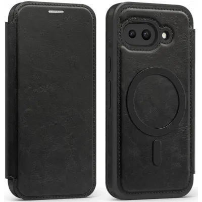 Phonesta Luxury Leder Book Wallet Klapphülle mit MagSafe für Google Pixel 9a - Schwarz