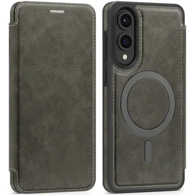 Phonesta Luxury Leder Book Wallet Klapphülle mit MagSafe für Samsung Galaxy S25 Edge - Grau