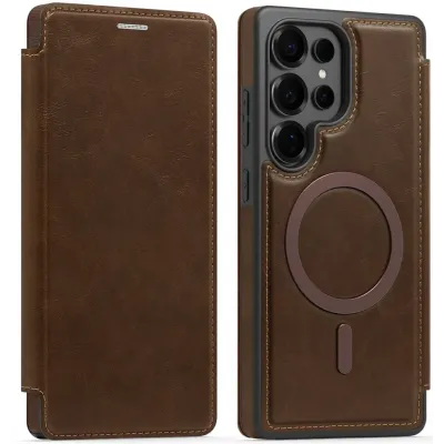 Phonesta Luxury Leder Book Wallet Klapphülle mit MagSafe für Samsung Galaxy S25 Ultra - Dunkelbraun