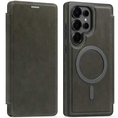 Phonesta Retro Vegan Leder MagSafe Back Cover Hülle für Samsung Galaxy S25 Ultra - Grün